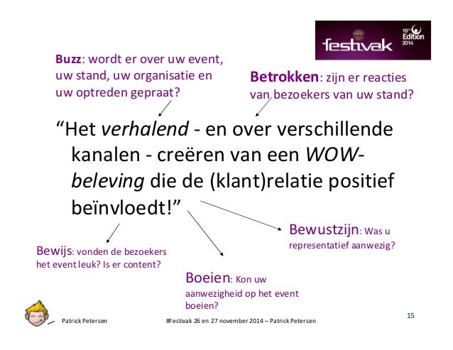 12. #Festivak 26 en 27 november Patrick Petersen 2014 – Patrick Petersen 16 Buzz en storytelling?