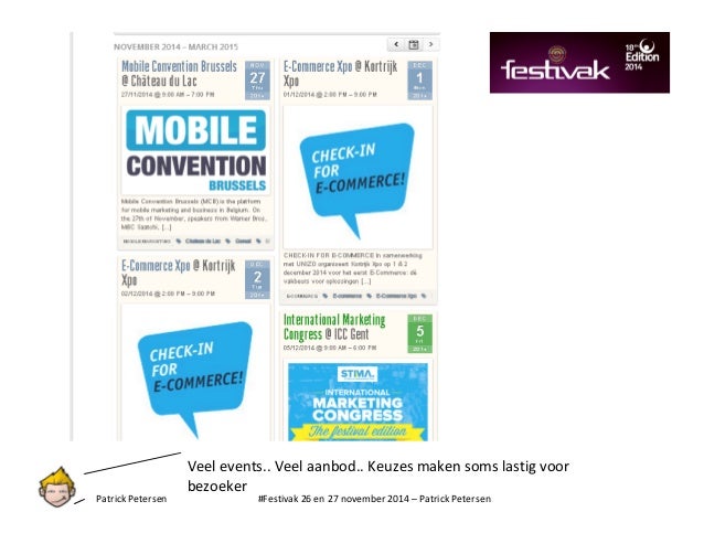 6. Veel events.. Veel aanbod.. Keuzes maken soms lastig voor bezoeker #Festivak 26 en 27 november Patrick Petersen 2014 – Patrick Petersen